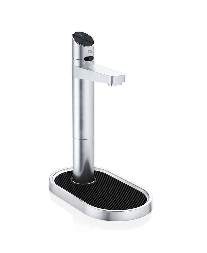 Zip HydroTap Design Range Chilled, Filtered water tap features a single under bench command centre including full colour interactive touch screen display with pin code protection and customisable settings including 2 energy saving modes including ON/OFF timers and 2 hour sleep mode, 'Quiet' mode with automated intelligent fan speed adjustment, antimicrobial protection impregnated into key water paths for enhanced hygiene, 100% water efficient air cooled technology, and 0.2 micron water filtration.