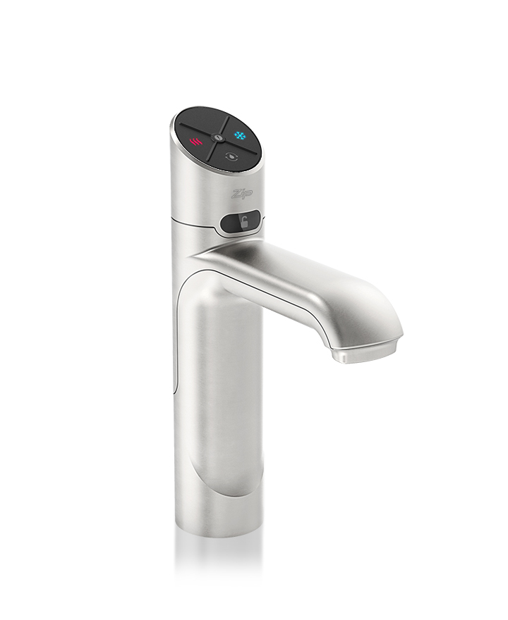 Zip HydroTap Classic Plus Boiling, Chilled, Filtered water tap features simple, intuitive controls including continuous flow to fill bottles, Boiling water safety lock, and antimicrobial protection impregnated within the new Classic Plus touch-pad for enhanced hygiene. The water system features a single under bench command centre including full colour interactive touch screen display with pin code protection and customisable settings including 2 boiling water safety modes, 3 energy saving modes including ON/OFF timers and sensor activated 'sleep when it's dark', 'Quiet' mode with automated intelligent fan speed adjustment, antimicrobial protection impregnated into key water paths for enhanced hygiene, 100% water efficient air cooled technology, and 0.2 micron water filtration. Easy to install integrated ventilation tray included.