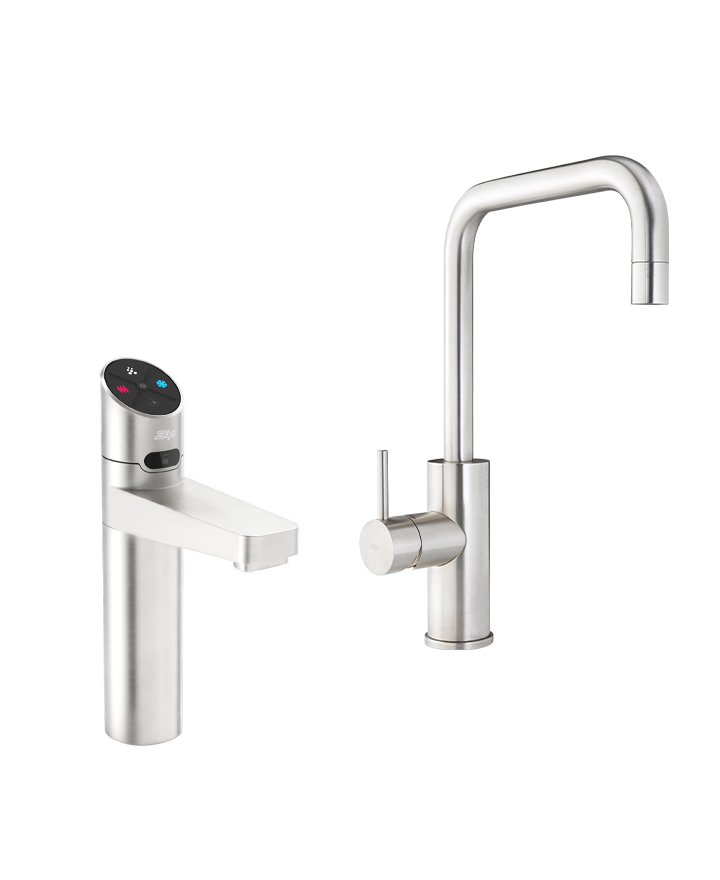 Zip HydroTap Design Range 5 in 1 Boiling, Chilled, Sparkling, Filtered water plus Hot and Cold washing up water from two separate taps. This water system features a single under bench command centre including full colour interactive touch screen display with pin code protection and customisable settings including boiling water safety mode, 2 energy saving modes including ON/OFF timers and 2 hour sleep mode, 'Quiet' mode with automated intelligent fan speed adjustment, antimicrobial protection impregnated into key water paths for enhanced hygiene, 100% water efficient air cooled technology, 0.2 micron water filtration, and a refillable CO2 cylinder. Easy to install integrated ventilation tray included.