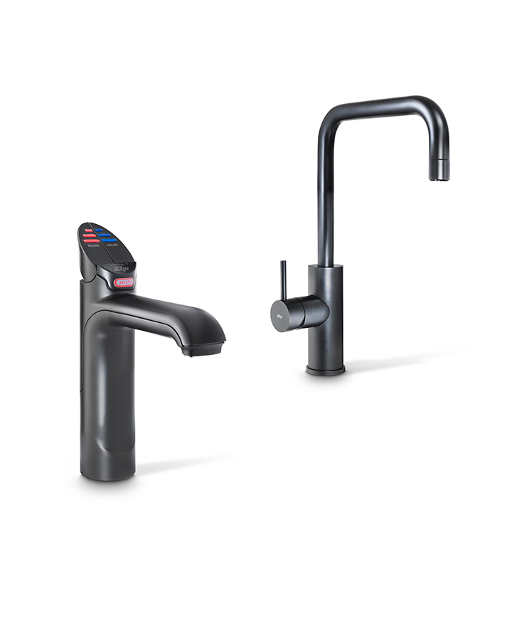 Zip HydroTap Classic 4 in 1 Boiling, Chilled, Filtered water plus Hot and Cold washing up water from two separate taps. The system features a single under bench command centre including full colour interactive touch screen display with pin code protection and customisable settings including 2 boiling water safety modes, 3 energy saving modes including ON/OFF timers and sensor activated 'sleep when it's dark', 'Quiet' mode with automated intelligent fan speed adjustment, antimicrobial protection impregnated into key water paths for enhanced hygiene, 100% water efficient air cooled technology, and 0.2 micron water filtration. Easy to install integrated ventilation tray included.