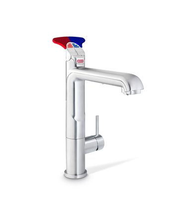 Zip HydroTap Classic All-in-One Boiling, Chilled, Filtered water plus Hot and Cold washing up water from a single tap (cold water supply required). The filtered water tap has large brightly coloured Braille lever handles. The system features a single under bench command centre including full colour interactive touch screen display with pin code protection and customisable settings including 2 boiling water safety modes, 3 energy saving modes including ON/OFF timers and sensor activated 'sleep when it's dark', 'Quiet' mode with automated intelligent fan speed adjustment, antimicrobial protection impregnated into key water paths for enhanced hygiene, 100% water efficient air cooled technology, and 0.2 micron water filtration. Easy to install integrated ventilation tray included.