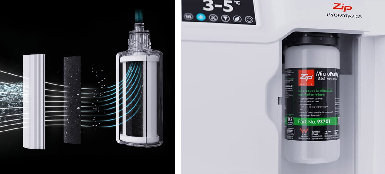 Designed to perform consistently across their entire lifetime, Zip HydroTap with MicroPurity filters gives you peace of mind that every glass will deliver water at its best.