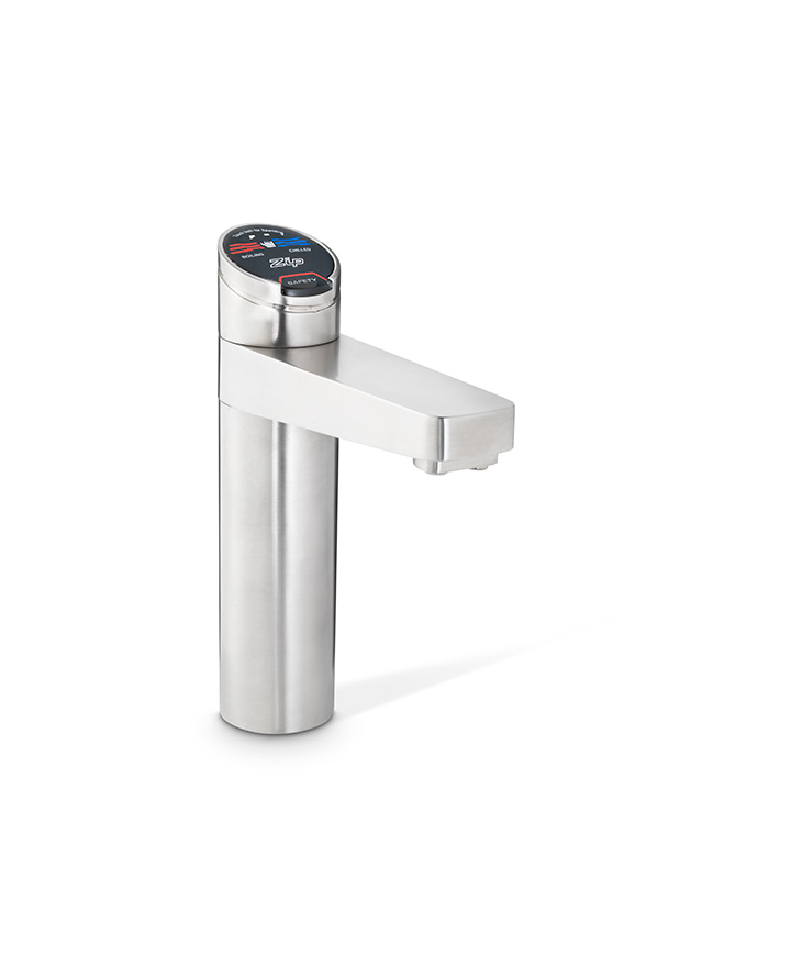 Zip HydroTap Design Range Boiling, Chilled, Filtered water appliance featuring a single under bench command centre including full colour interactive touch screen display with pin code protection, 2 boiling water safety modes, 2 energy saving modes and 0.2 micron water filtration.