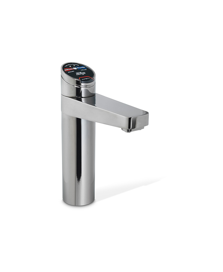 Zip HydroTap Design Range Boiling, Chilled, Sparkling, Filtered water appliance featuring a single under bench command centre including full colour interactive touch screen display with pin code protection, 2 boiling water safety modes, 2 energy saving modes, 0.2 micron water filtration and a refillable CO2 cylinder.