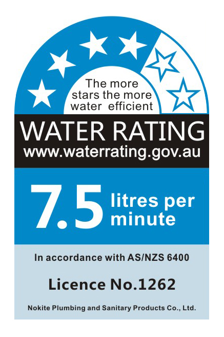 - Water Efficiency 4 Stars, Water Consumption 7.5L per minute