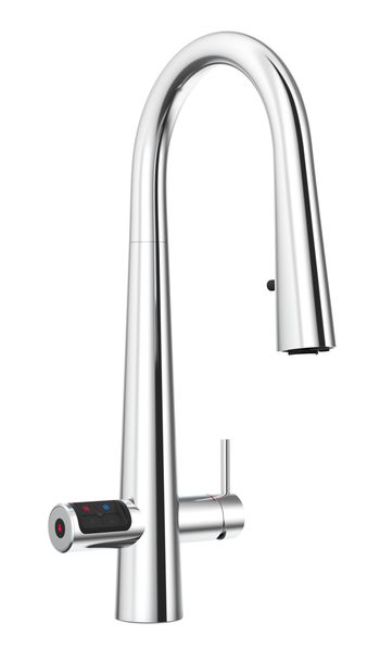 Zip HydroTap Design Range CELSIUS PLUS All-In-One Pull-Out Boiling & Chilled Filtered water, plus Hot and Cold washing up water from a single tap (hot and cold water supply required) including the artfully incorporated pull-out sprayer for convenience. The intuitive touch-pad with antimicrobial protection operates the filtered drinking water, while the lever dispenses unfiltered hot and cold water. The system features a single under bench command centre including full colour interactive touch screen display with pin code protection and customisable settings including boiling water safety mode, 3 energy saving modes including ON/OFF timers and 2 hour sleep mode, 'Quiet' mode with automated intelligent fan speed adjustment, antimicrobial protection impregnated into key water paths for enhanced hygiene, 100% water efficient air cooled technology and 0.2 micron water filtration. This product is available from selected specialist retailers. Click the "Find your Specialist Retailer" link to find your local showroom.