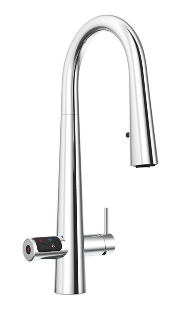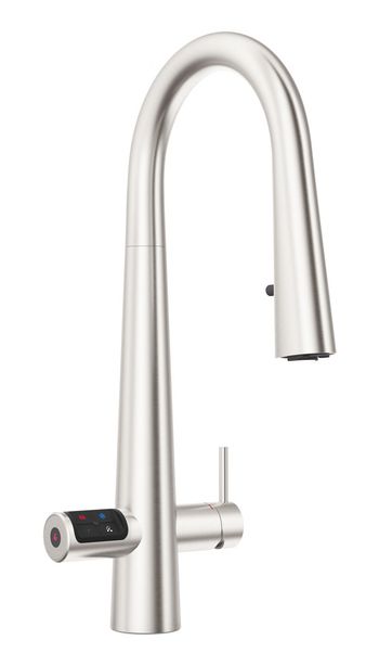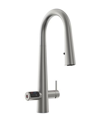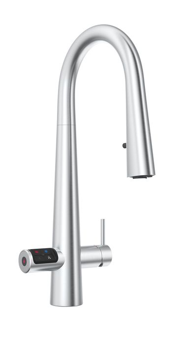Zip HydroTap Design Range CELSIUS PLUS All-In-One Pull-Out Boiling, Chilled & Sparkling Filtered water, plus Hot and Cold washing up water from a single tap (hot and cold water supply required) including the artfully incorporated pull-out sprayer for convenience. The intuitive touch-pad with antimicrobial protection operates the filtered drinking water, while the lever dispenses unfiltered hot and cold water. Enhanced sparkling water delivery every time with an optimised aerator hidden inside the elegant spout of the tap. The system features a single under bench command centre including full colour interactive touch screen display with pin code protection and customisable settings including boiling water safety mode, 3 energy saving modes including ON/OFF timers and 2 hour sleep mode, 'Quiet' mode with automated intelligent fan speed adjustment, antimicrobial protection impregnated into key water paths for enhanced hygiene, 100% water efficient air cooled technology, 0.2 micron water filtration, and 2 disposable CO2 cylinders. This product is available from selected specialist retailers. Click the "Find your Specialist Retailer" link to find your local showroom.