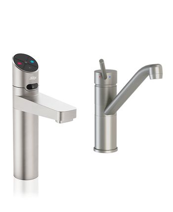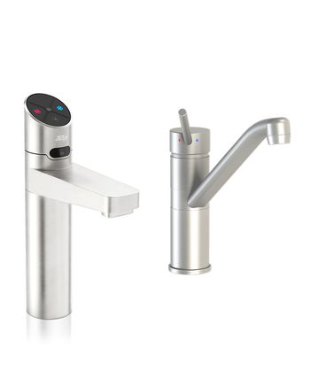 Zip HydroTap Design Range 4 in 1 Boiling, Chilled, Filtered water plus Hot and Cold washing up water from two separate taps. This water system features a single under bench command centre including full colour interactive touch screen display with pin code protection and customisable settings including boiling water safety mode, 2 energy saving modes including ON/OFF timers and 2 hour sleep mode, 'Quiet' mode with automated intelligent fan speed adjustment, antimicrobial protection impregnated into key water paths for enhanced hygiene, 100% water efficient air cooled technology, 0.2 micron water filtration, and 2 disposable CO2 cylinders. Easy to install integrated ventilation tray included.