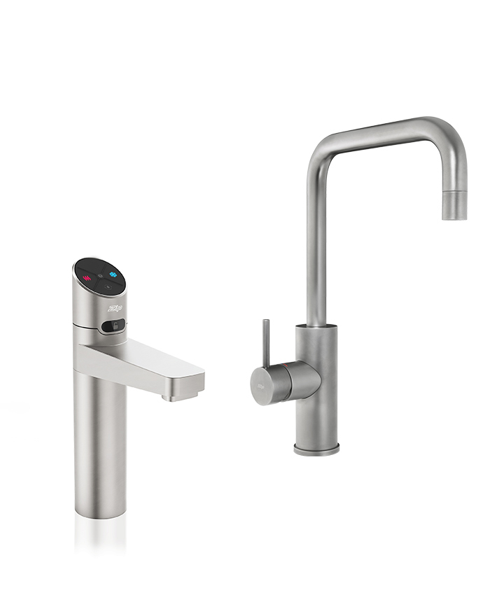 Zip HydroTap Design Range 4 in 1 Boiling, Chilled, Filtered water plus Hot and Cold washing up water from two separate taps. This water system features a single under bench command centre including full colour interactive touch screen display with pin code protection and customisable settings including boiling water safety mode, 2 energy saving modes including ON/OFF timers and 2 hour sleep mode, 'Quiet' mode with automated intelligent fan speed adjustment, antimicrobial protection impregnated into key water paths for enhanced hygiene, 100% water efficient air cooled technology, 0.2 micron water filtration, and 2 disposable CO2 cylinders. Easy to install integrated ventilation tray included.