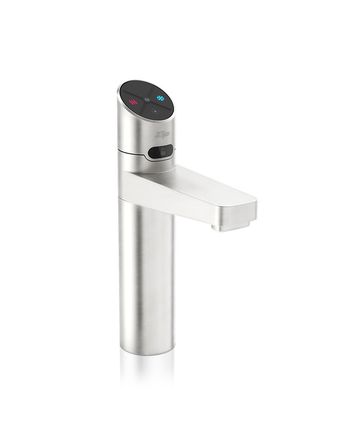 Zip HydroTap Design Range Boiling, Chilled, Filtered water tap features a single under bench command centre including full colour interactive touch screen display with pin code protection and customisable settings including boiling water safety mode, 2 energy saving modes including ON/OFF timers and 2 hour sleep mode, 'Quiet' mode with automated intelligent fan speed adjustment, antimicrobial protection impregnated into key water paths for enhanced hygiene, 100% water efficient air cooled technology, and 0.2 micron water filtration.