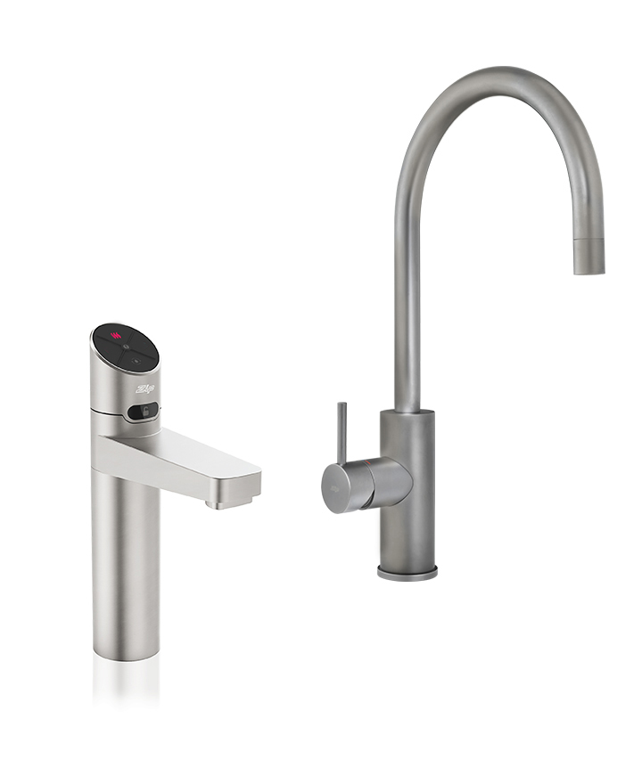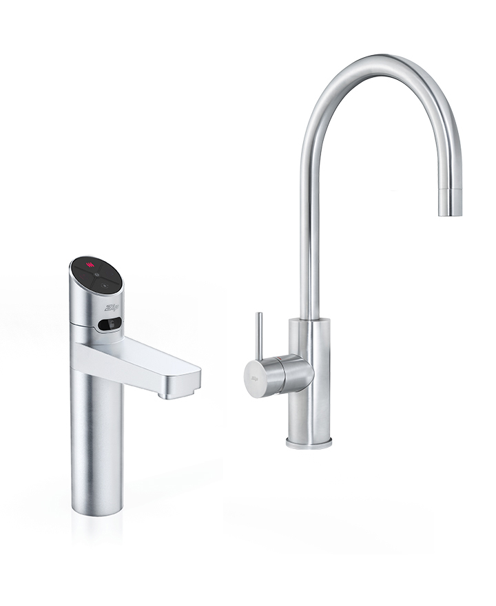 Zip HydroTap Design Range 3 in 1 Boiling Filtered water plus Hot and Cold washing up water from two separate taps. This water system features a single under bench command centre including full colour interactive touch screen display with pin code protection and customisable settings including boiling water safety mode, 2 energy saving modes including ON/OFF timers and 2 hour sleep mode, 'Quiet' mode with automated intelligent fan speed adjustment, antimicrobial protection impregnated into key water paths for enhanced hygiene, 100% water efficient air cooled technology, 0.2 micron water filtration, and 2 disposable CO2 cylinders.