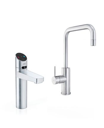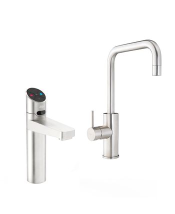 Zip HydroTap Design Range 4 in 1 Boiling, Chilled, Filtered water plus Hot and Cold washing up water from two separate taps. This water system features a single under bench command centre including full colour interactive touch screen display with pin code protection and customisable settings including boiling water safety mode, 2 energy saving modes including ON/OFF timers and 2 hour sleep mode, 'Quiet' mode with automated intelligent fan speed adjustment, antimicrobial protection impregnated into key water paths for enhanced hygiene, 100% water efficient air cooled technology, 0.2 micron water filtration, and 2 disposable CO2 cylinders. Easy to install integrated ventilation tray included.
