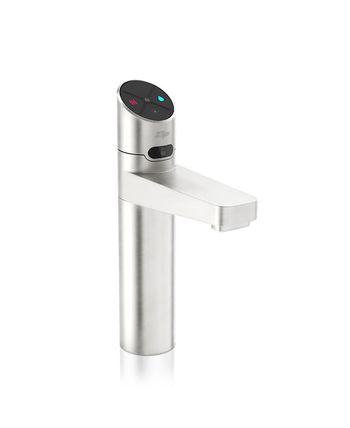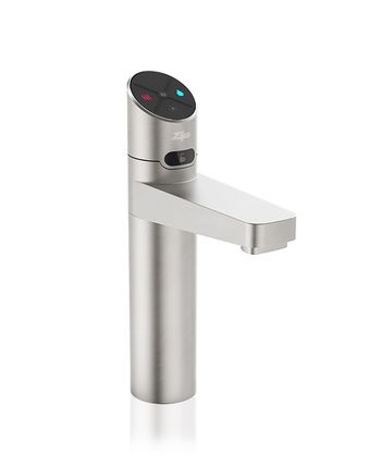 Zip HydroTap Design Range Boiling, Ambient, Filtered water tap features a single under bench command centre including full colour interactive touch screen display with pin code protection and customisable settings including boiling water safety mode, 2 energy saving modes including ON/OFF timers and 2 hour sleep mode, antimicrobial protection impregnated into key water paths for enhanced hygiene, and 0.2 micron water filtration.
