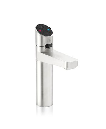 Zip HydroTap Design Range Boiling, Chilled, Sparkling, Filtered water tap features a single under bench command centre including full colour interactive touch screen display with pin code protection and customisable settings including boiling water safety mode, 2 energy saving modes including ON/OFF timers and 2 hour sleep mode, 'Quiet' mode with automated intelligent fan speed adjustment, antimicrobial protection impregnated into key water paths for enhanced hygiene, 100% water efficient air cooled technology, 0.2 micron water filtration, and a refillable CO2 cylinder. Easy to install integrated ventilation tray included.